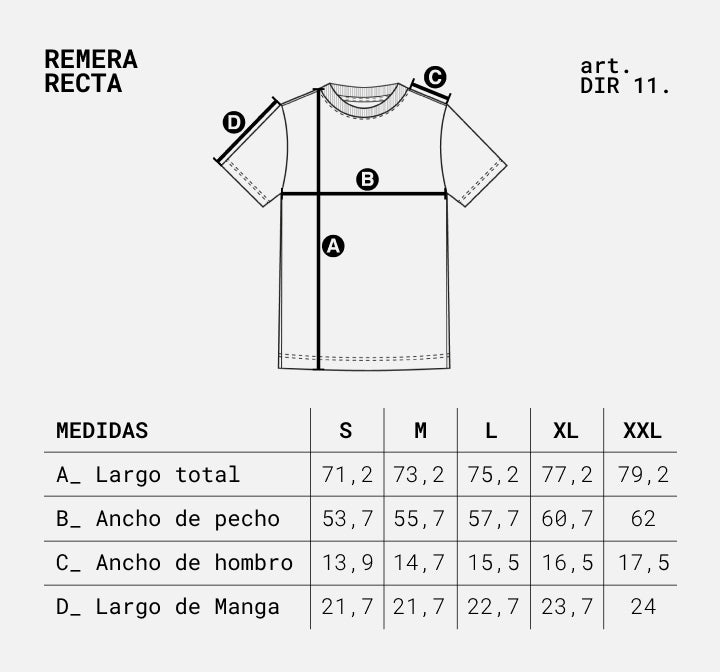Nuestras remeras son 100% algodón, por lo que pueden presentar hasta un 4% de encogimiento luego del primer lavado. Esta variación está dentro de la tolerancia esperada para fibras naturales. Recomendamos seguir las instrucciones de cuidado para minimizarla.